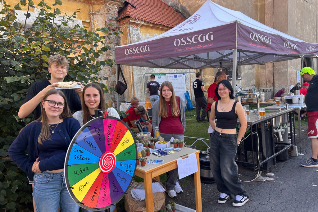 Das Dorffest prägte den Samstag: Die Gruppe übernahm verschiedene Dienste und war beispielsweise am Glücksrad-Stand und anderen Aktivitäten beteiligt. Trotz diverser Sprachbarrieren fand vor allem auf Basis der englischen Sprache eine lebhafte Begegnung der Schülerinnen und Schüler mit tschechischen Kindern und Jugendlichen statt. Es war trotz sommerlicher Hitze eine bereichernde Erfahrung, gemeinsam Dinge zu gestalten und für andere da zu sein. Das Feuerwerk am Abend und die ausgelassenen gemeinsamen Stunden sorgten für einen stimmungsvollen Abschluss.