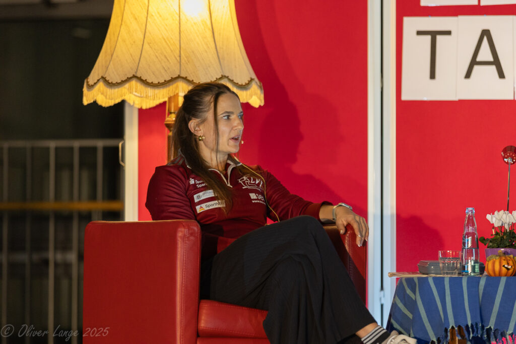 Angesprochen auf die für den Mai 2026 in Las Vegas geplanten „Enhanced Games“, bei denen den Teilnehmern Doping erlaubt werden soll, um Höchstleistungen zu erreichen, distanzierte sie sich mit deutlichen Worten vom der Einnahme leistungsfördernder Substanzen. Neben dem Aspekt der Wettbewerbsverzerrung und dem Verlust der Glaubwürdigkeit der Athleten wies sie auch auf die gesundheitlichen Gefahren von unerlaubten Aufputschmitteln hin. Sie selbst unterliegt regelmäßigen und unangekündigten Kontrollen, für die sie spontan bereit stehen muss. Dazu ist es erforderlich, dass sie in einer App hinterlegt, wann sie sich wo aufhält und dementsprechend erreichbar ist.
