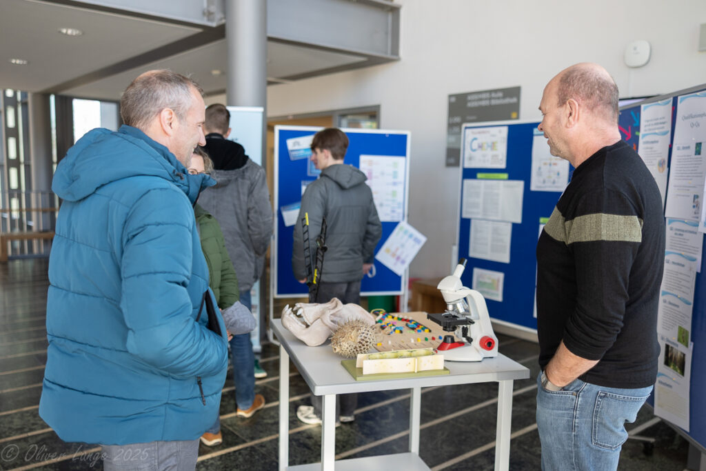 So waren in der Glashalle mithilfe von Stellwänden, Smart-TVs und einer digitalen Edumap viele Informationen zu einzelnen Fächern, zusätzlichen Angeboten sowie zur Europaschule und zur UNESCO-Schule ausgestellt. Nach der Begrüßung durch den Schulleiter Tim Sauerwein konnten die Gäste zum einen auf diese Weise einen ersten Eindruck gewinnen, zum anderen standen neben der Schulleitung auch Lehrkräfte für Fragen bereit, sodass es viele Gespräche über Fächer, Leistungskurswahlen und die Anforderungen der Oberstufe gab.