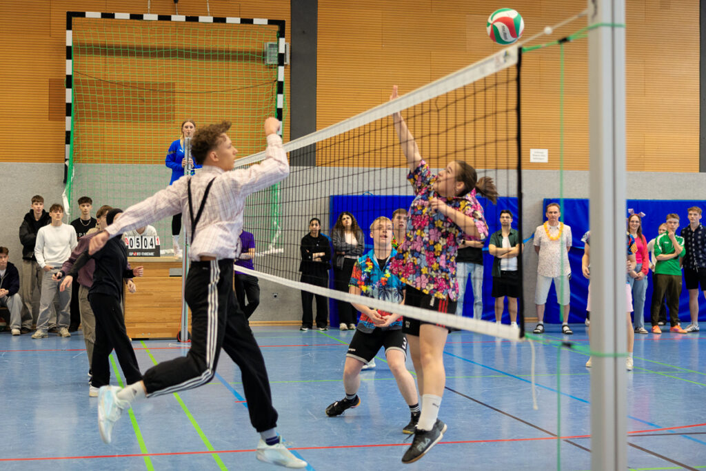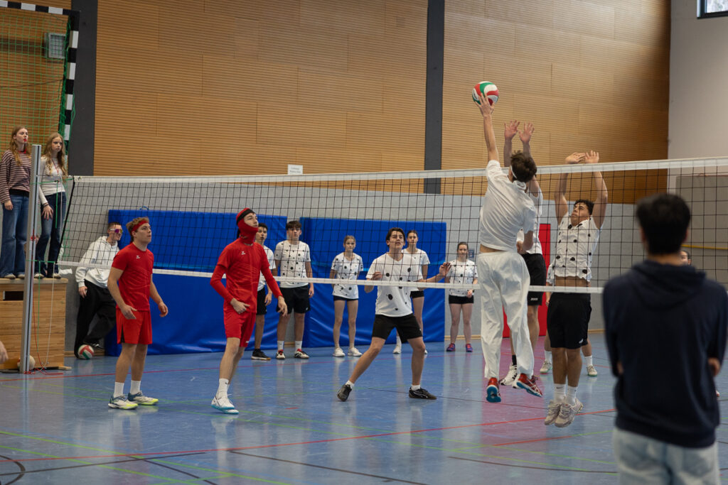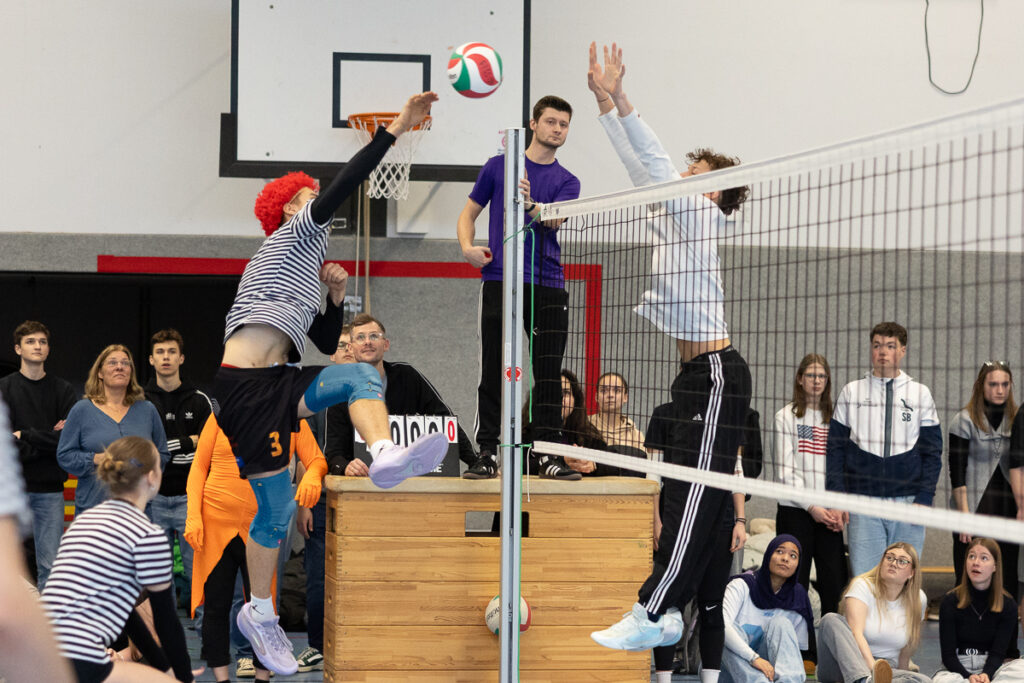 Am 17. und 18. Dezember wurde die Sporthalle der ASS zum Austragungsort eines großen Volleyballturniers, an dem zum ersten Mal seit langer Zeit die TUT-Kurse aller drei Jahrgänge teilnahmen. Da die Schülerinnen und Schüler in den Wochen zuvor nicht nur ihre Fähigkeiten in dieser Sportart trainiert, sondern auch zum Teil sehr fantasievolle Kostüme für ihre Teilnahme entworfen hatten, waren Vorfreude und Begeisterung schon am Mittwoch sehr groß.