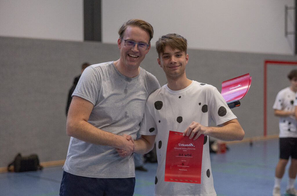 Dann endlich war es soweit: Der Schulleiter Tim Sauerwein überreichte zunächst den TUT-Kursen von Herrn Friedrich (Physik Q3) und Herrn Wiederhold (Sport Q1) die Urkunden für die beiden Drittplatzierten, bevor er den Leistungskurs Sport von Herrn Wuttke ebenfalls mit einer Urkunde auszeichnete.