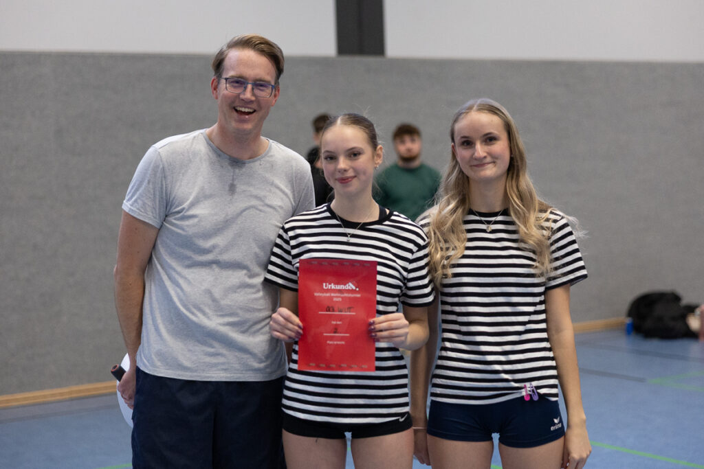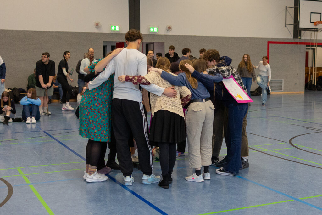 Schließlich nahm Frau Freitag gemeinsam mit Michel Sattmann unter lautem Applaus den Siegerpokal aus den Händen des Schulleiters entgegen und posierte mit ihrem Kurs noch für das offizielle Siegerfoto, mit dem das Turnier dann sein Ende fand.
