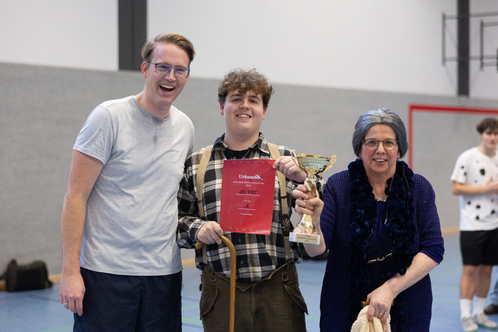 Vor der Siegerehrung musste das Team allerdings noch gegen eine Lehrermannschaft antreten, die aber gegen die frisch gebackenen Gewinner trotz hochkarätiger Besetzung ebenfalls den Kürzeren zog.