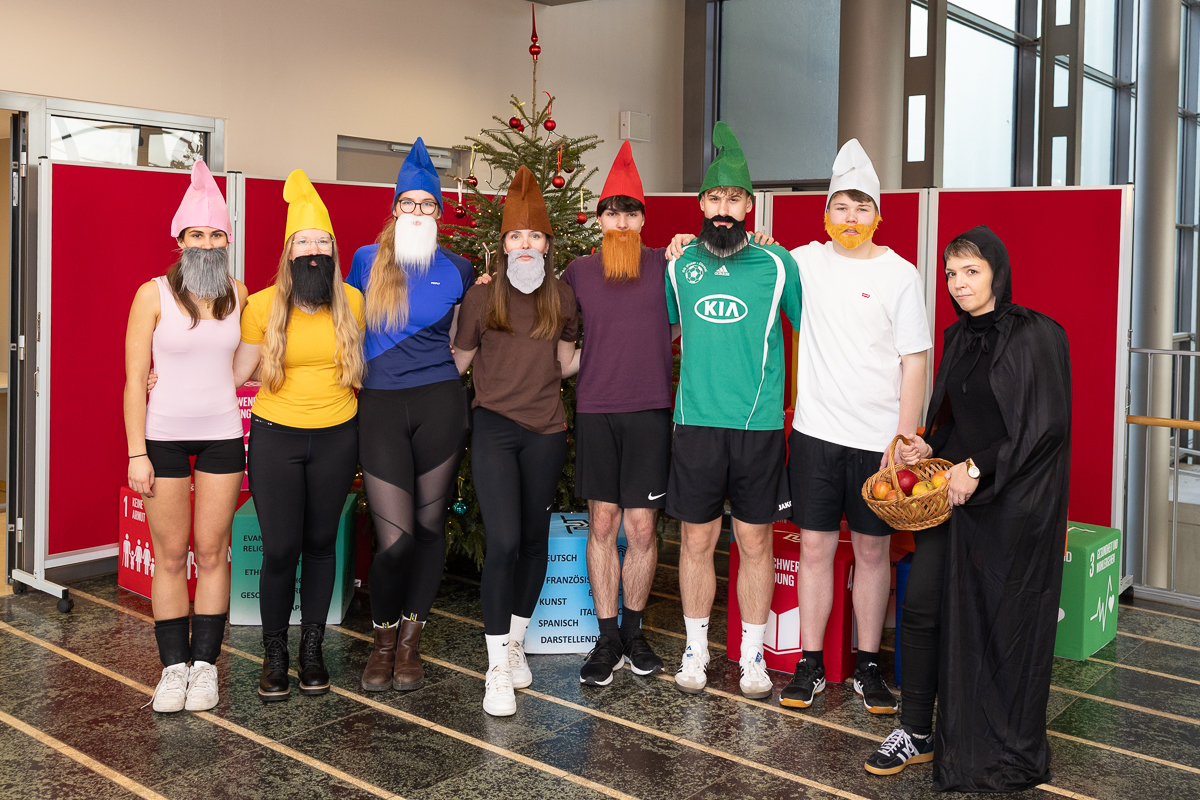 Im Rahmen des großen Volleyballturniers am 17. und 18.12. stellten sich alle TUT-Kurse mit ihren zum Teil sehr originellen Verkleidungen im weihnachtlichen Ambiente für Fotos zur Verfügung; diese Aufnahmen werden nachfolgend präsentiert, damit die Schulgemeinde sich selbst ein Bild von der Kreativität der Schülerinnen und Schüler machen kann.